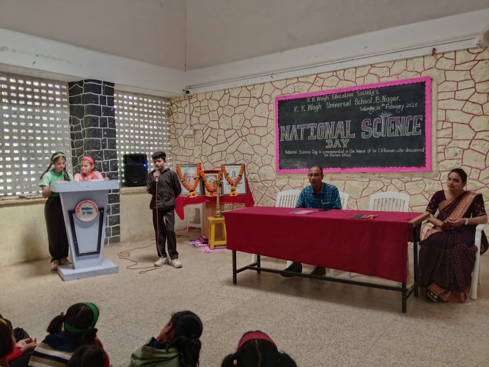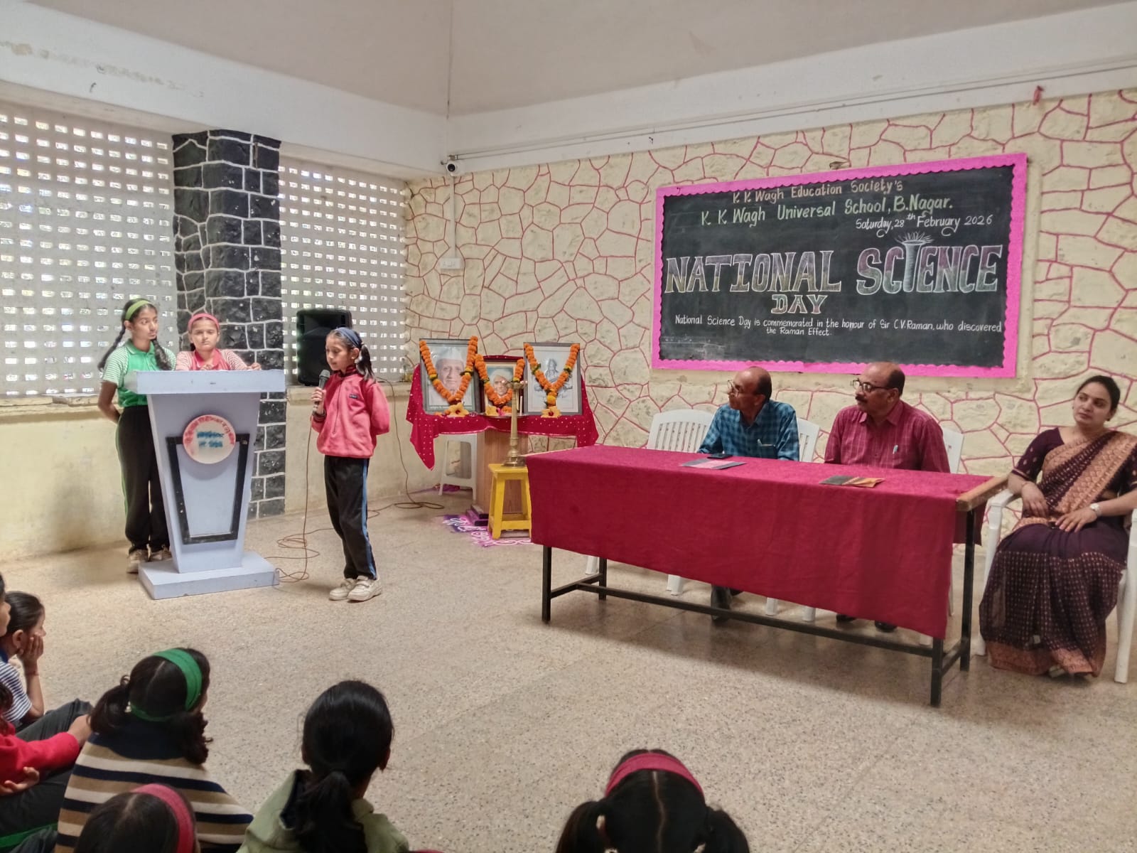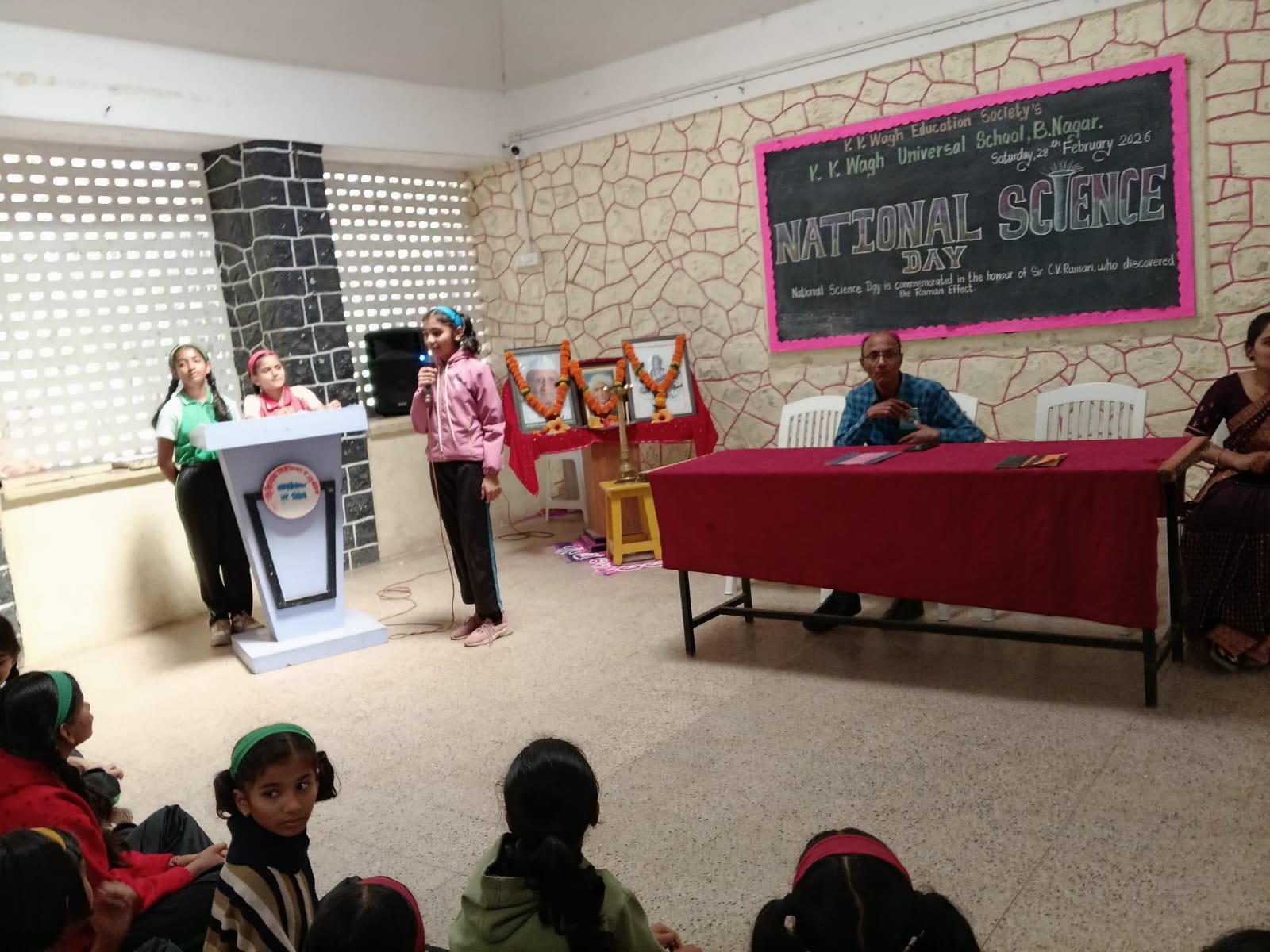 Students spoke about the importance of science and the contributions of great scientists. A short speech about Dr. C. V. Raman and his discovery was delivered by a student. The science teachers also explained why this day is celebrated as National Science Day in India.
