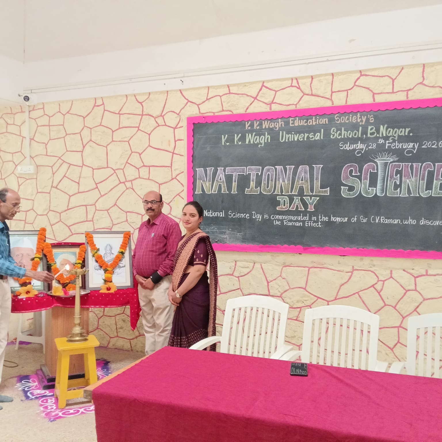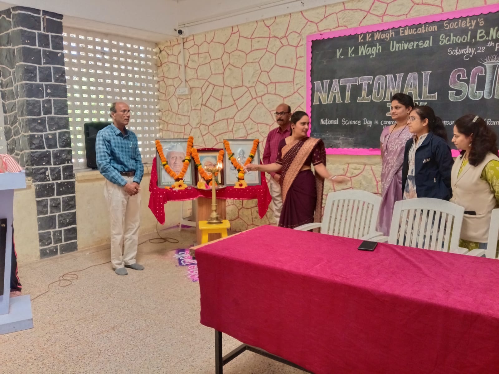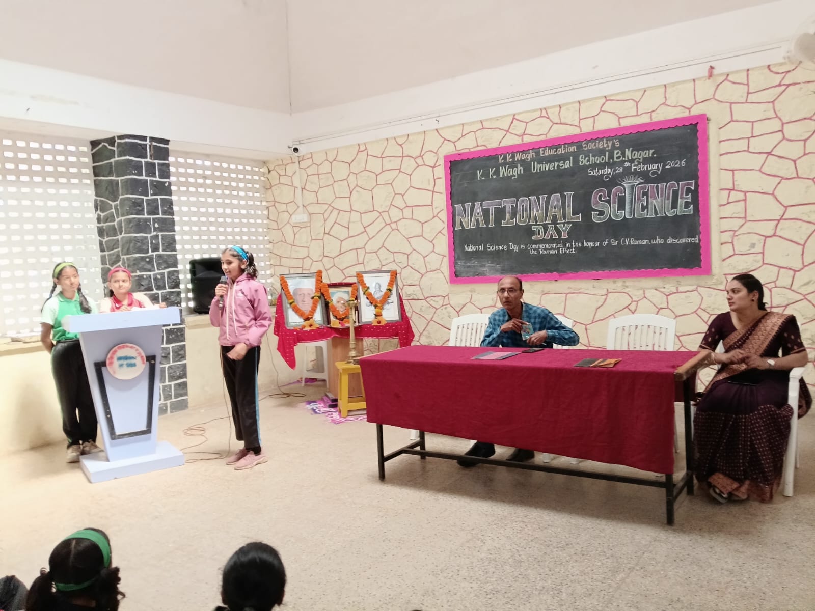 Students spoke about the importance of science and the contributions of great scientists. A short speech about Dr. C. V. Raman and his discovery was delivered by a student. The science teachers also explained why this day is celebrated as National Science Day in India.
